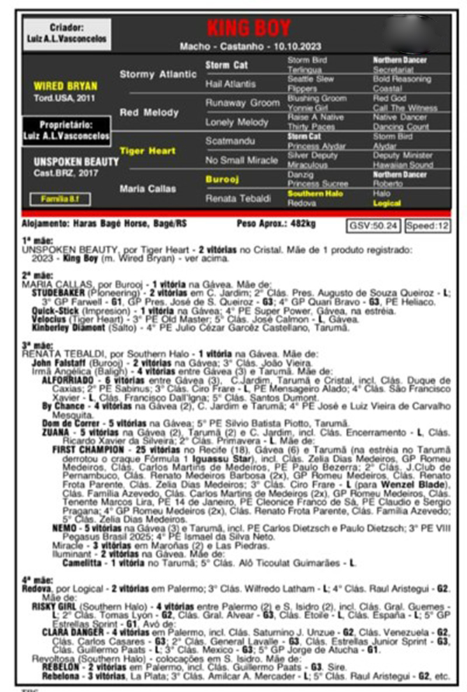 Criador: Luiz Antonio Luz Vasconcelos Proprietário: Luiz Antonio Luz Vasconcelos Alojamento: Haras Bagé Horse, Bagé, RS. Abertura do leilão: 28/10/2025 Encerramento do leilão: 31/12/2025